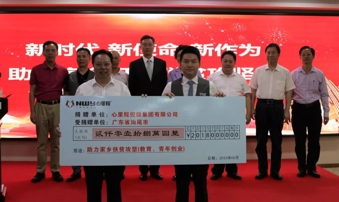 日前,“新時代、新使命、新作為”、助力家鄉(xiāng)打贏脫貧攻堅戰(zhàn)暨心里程控股集團有限公司向汕尾市捐款儀式,在心里程集團深圳總部隆重舉行。心里程控股集團董事長彭國遠代表心里程集團,向廣東省汕尾市捐款2018萬元人民幣。此善舉吸引了大批媒體爭相報道,深圳衛(wèi)視、中國新聞網(wǎng)、騰訊、網(wǎng)易、百度、搜狐、土豆、愛奇藝、鳳凰網(wǎng)、今日頭條等數(shù)十家媒體廣泛關(guān)注,各大微信公眾號紛紛轉(zhuǎn)載,為彭國遠董事長助力家鄉(xiāng)打贏脫貧攻堅戰(zhàn)的善舉點贊!