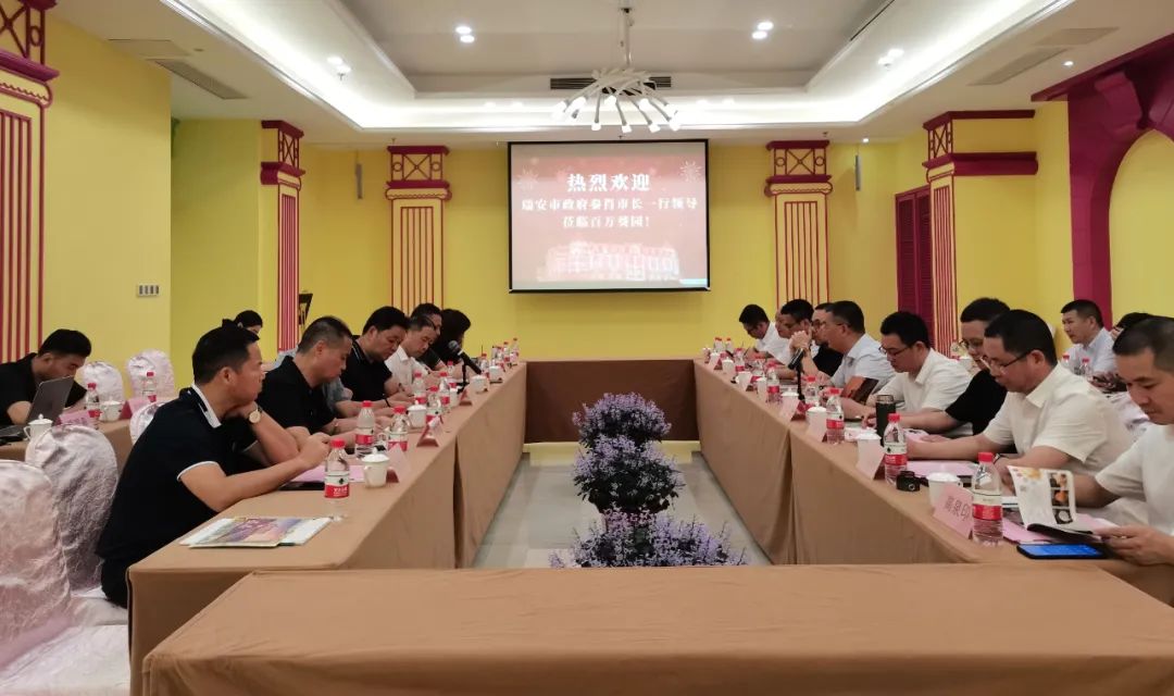 8月19日,浙江省溫州市瑞安市委副書記、市長(zhǎng)秦肖,瑞安市委常委、市政府黨組成員林朝進(jìn),瑞安市副市長(zhǎng)陳鵬等領(lǐng)導(dǎo)赴廣州考察香港百萬葵園集團(tuán)并召開洽談會(huì),洽談文旅項(xiàng)目招引事宜。香港百萬葵園集團(tuán)有限公司董事長(zhǎng)馬輝熱情接待考察團(tuán)一行。心里程控股集團(tuán)副董事長(zhǎng)、廣東心里程產(chǎn)業(yè)投資集團(tuán)董事長(zhǎng)彭俏奇受邀參加洽談會(huì)。