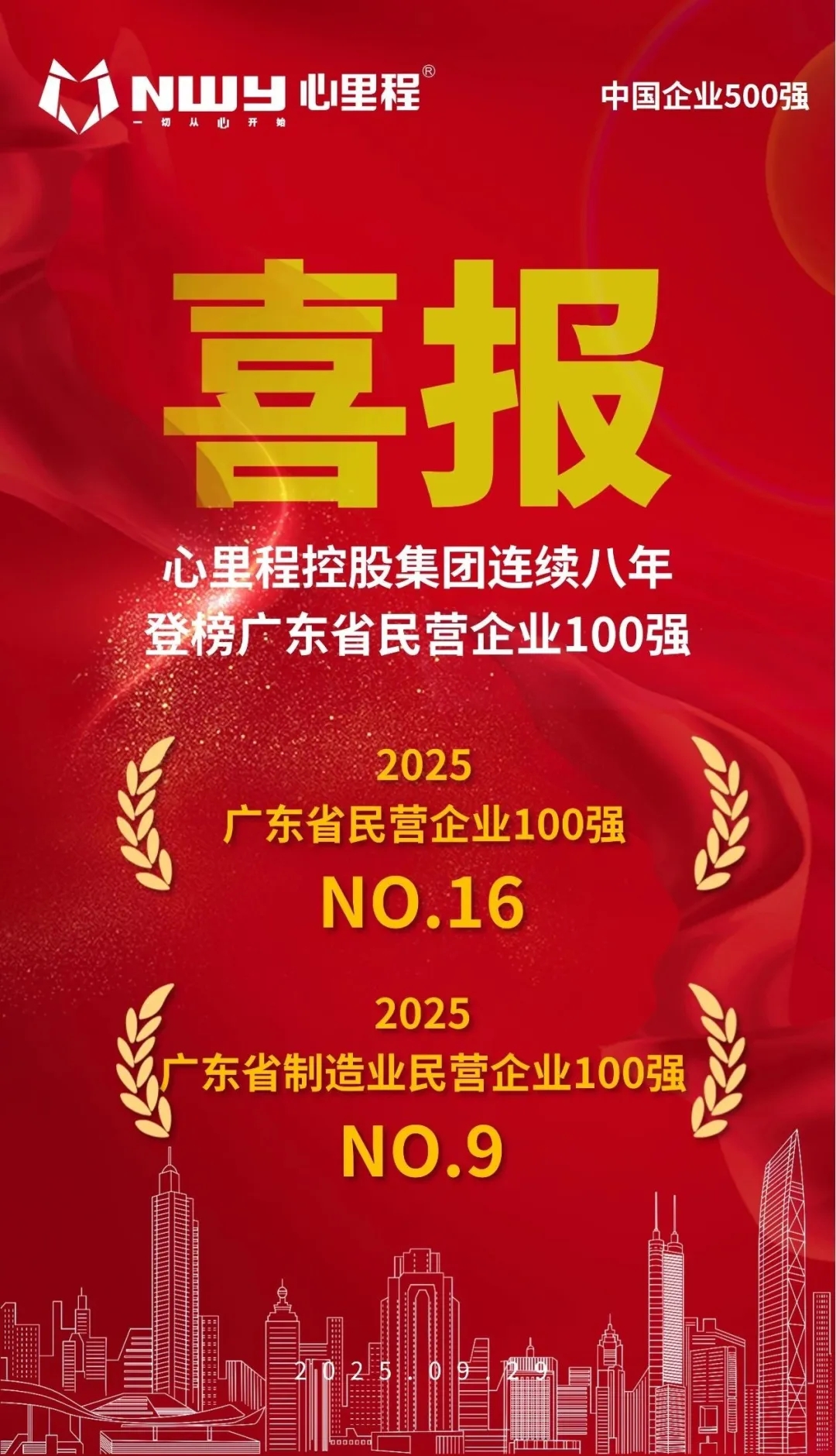 連續(xù)八年登榜!心里程集團(tuán)榮登2025深圳企業(yè)500強(qiáng)第22位(附全榜單)