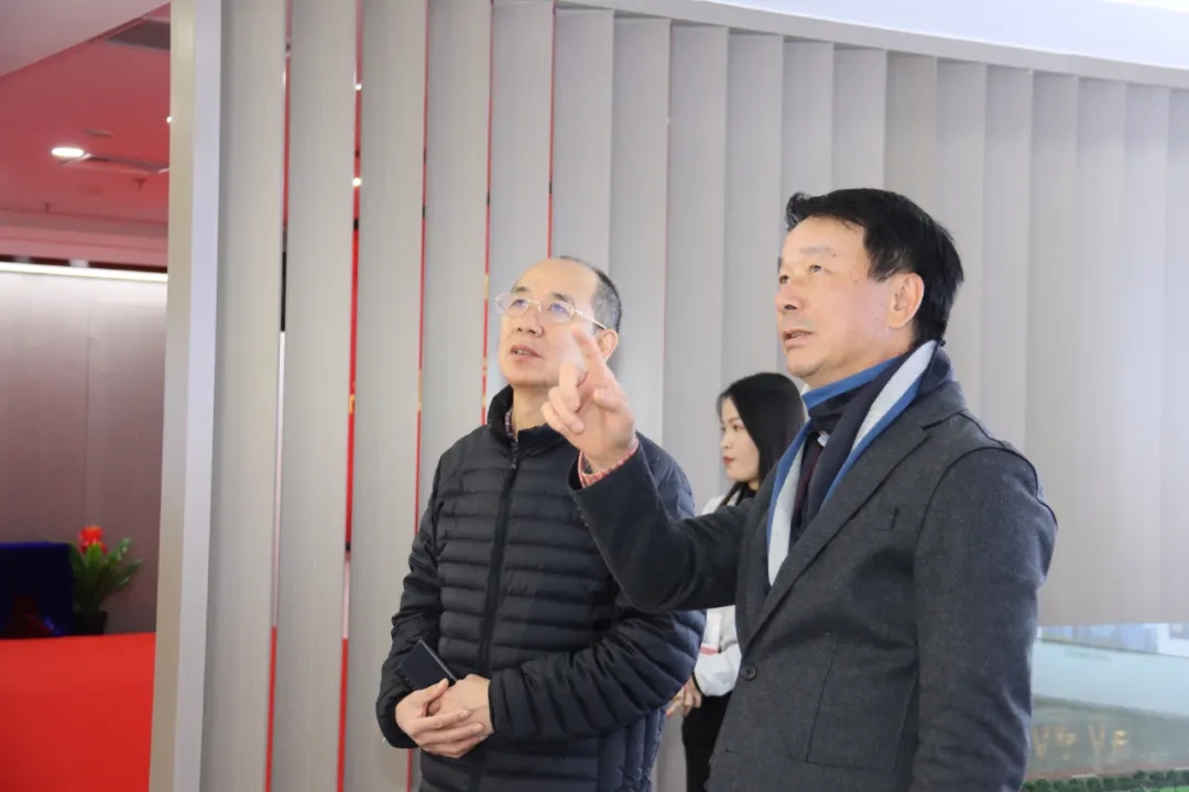 彭錦環(huán)總裁(右一)陪同鄒炎漢校長(右二)參觀心里程集團總部