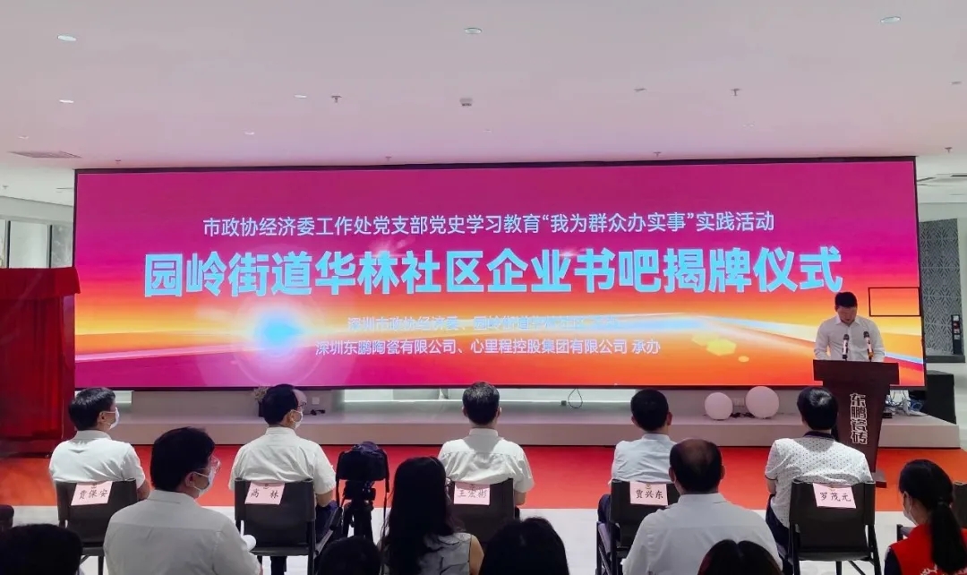 9月2日,由深圳市政協(xié)經(jīng)濟委、園嶺街道華林社區(qū)主辦,深圳東鵬陶瓷有限公司、心里程控股集團承辦的“我為群眾辦實事”園嶺街道華林社區(qū)企業(yè)書吧揭牌儀式在通泰大廈東鵬瓷磚展廳舉行。