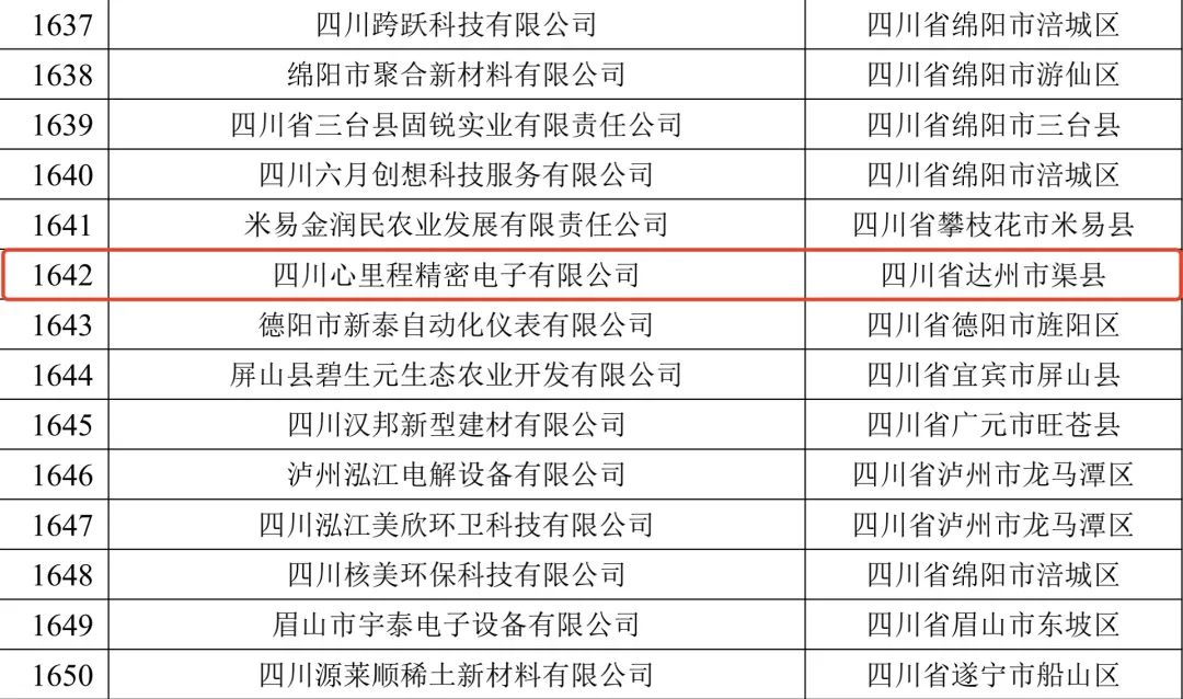 近日,四川省科技廳發(fā)布了《關(guān)于公示2022第二批擬入庫科技型中小企業(yè)名單的通知》,共有2487家企業(yè)列入圍,四川心里程精密電子有限公司成功入庫四川省2022年第二批科技型中小企業(yè),這是對四川心里程科研實力和創(chuàng)新能力的官方認可!
