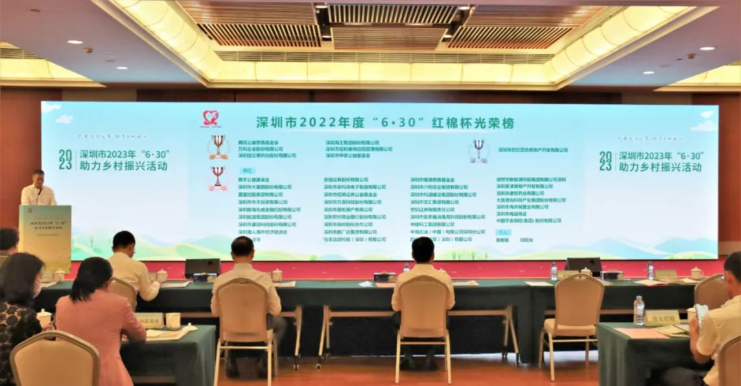 2023年深圳“6·30”活動圍繞“鞏固脫貧成果,助力鄉(xiāng)村振興”主題展開,現(xiàn)場宣讀了深圳市2023年“6·30”助力鄉(xiāng)村振興活動倡議書、深圳市2022年度“6·30紅棉杯”認(rèn)定結(jié)果,愛心企業(yè)、愛心組織等現(xiàn)場踴躍參與“6·30”舉牌認(rèn)捐和消費(fèi)幫扶舉牌認(rèn)購。市委常委、常務(wù)副市長黃敏,市政協(xié)原主席、市慈善會會長戴北方,市政府副秘書長張晉周,市鄉(xiāng)村振興和協(xié)作交流局局長劉衛(wèi)翔,信義集團(tuán)、騰訊公益慈善基金會、深圳市百合控股集團(tuán)有限公司、心里程控股集團(tuán)有限公司等愛心企業(yè)及社會團(tuán)體代表參加此次活動。