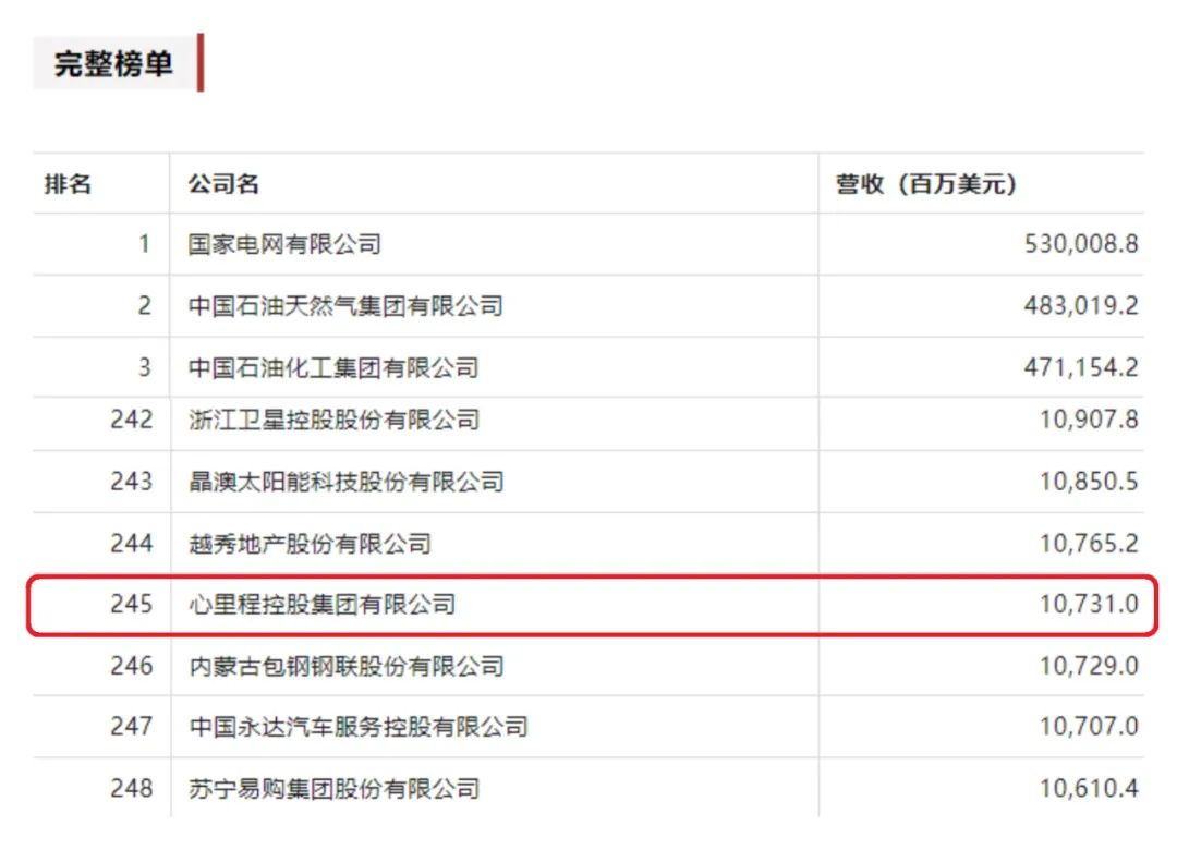 7月25日,財富Plus APP發(fā)布了2023年《財富》中國500強排行榜。心里程集團以10731百萬美元營收榮登榜單第245位。
