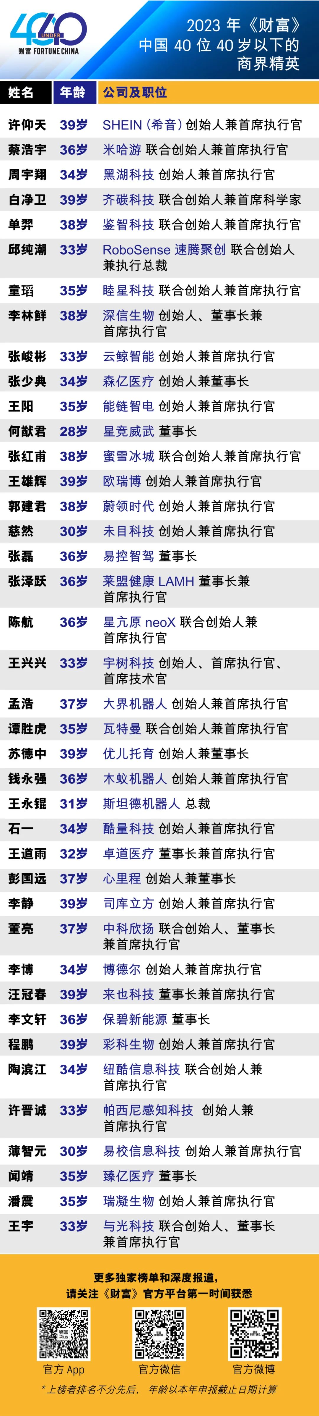 “2023年《財(cái)富》中國(guó)40位40歲以下的商界精英”全榜單