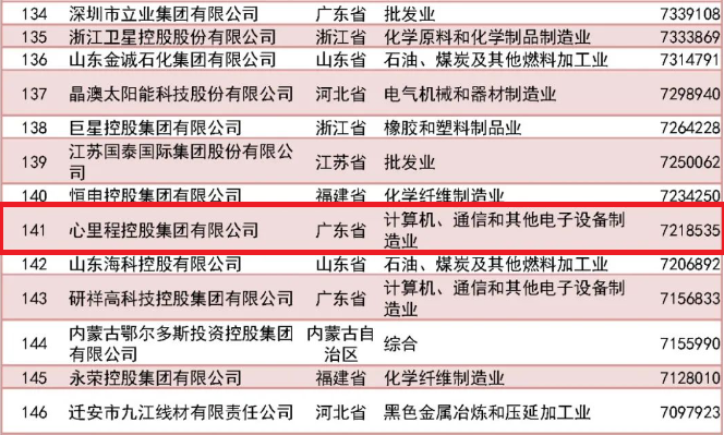 心里程集團榮登“2023中國民營企業(yè)500強”榜單第141位