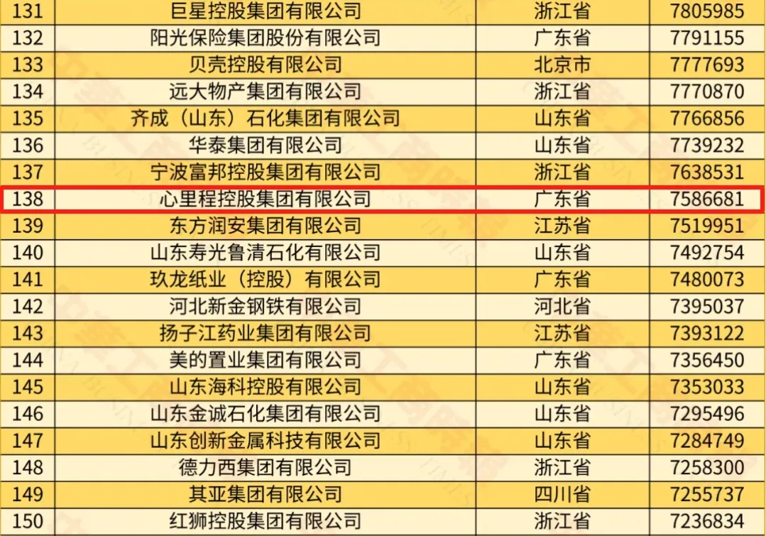 心里程集團榮登2024中國民營企業(yè)500強第138位