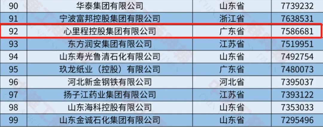 心里程集團榮登2024中國制造業(yè)民營企業(yè)500強第92位