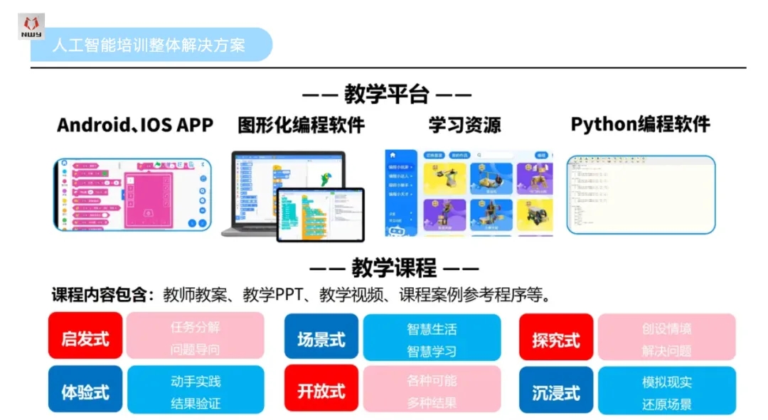 作為一家深耕教育行業(yè)多年的綜合性集團,心里程集團一直關注人工智能與教育的深度融合,并在這一領域早有布局。近年來,心里程集團緊密圍繞國家的政策方針,自主研發(fā)了AI智慧教育整體解決方案。方案全面覆蓋了學前教育、中小學教育、職業(yè)教育(職校&高校)三大教育領域,具體服務內容包含軟件、硬件、服務、應用培訓、金融、研學等方面。其中,人工智能培訓整體解決方案的課程根據(jù)大班、興趣社團、延時服務、賽事等教學場景,采用項目驅動教學方式,提供全方位的教學資源,把項目式教學融入到智慧主題場景中,讓學生能夠沉浸在啟發(fā)式、探究式和開放式的創(chuàng)新創(chuàng)作學習中,深度體驗學習軟硬件結合的人工智能、物聯(lián)網、機器人編程等前沿科技創(chuàng)新知識、技能和方法。賦能青少年科學素養(yǎng)的提升,讓青少年具備社會責任感、科技創(chuàng)新精神和綜合實踐能力。