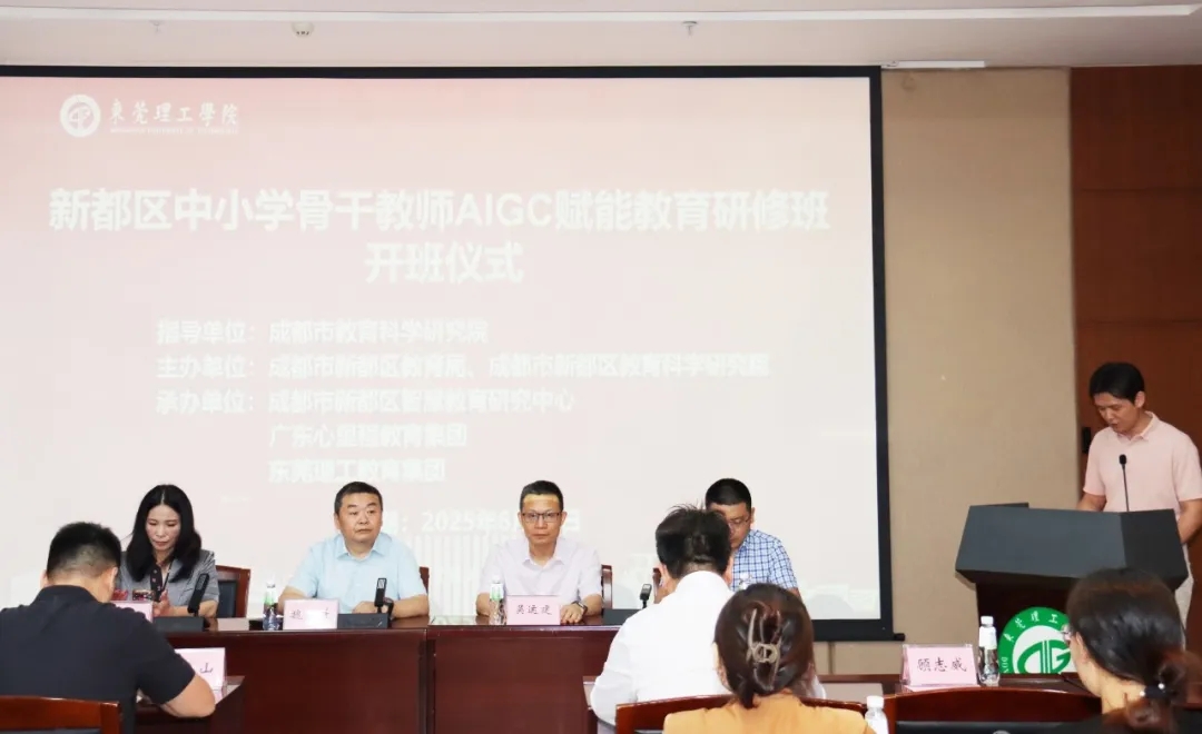 6月23日上午,由成都市教育科學(xué)研究院作為指導(dǎo)單位,成都市新都區(qū)教育局、成都市新都區(qū)教育科學(xué)研究院主辦,廣東心里程教育集團(tuán)、成都市新都區(qū)智慧教育研究中心、東莞理工教育集團(tuán)承辦的“新都區(qū)中小學(xué)骨干教師AIGC賦能教育研修班”于東莞理工學(xué)院(松山湖校區(qū))學(xué)術(shù)會(huì)議中心舉行開班儀式。