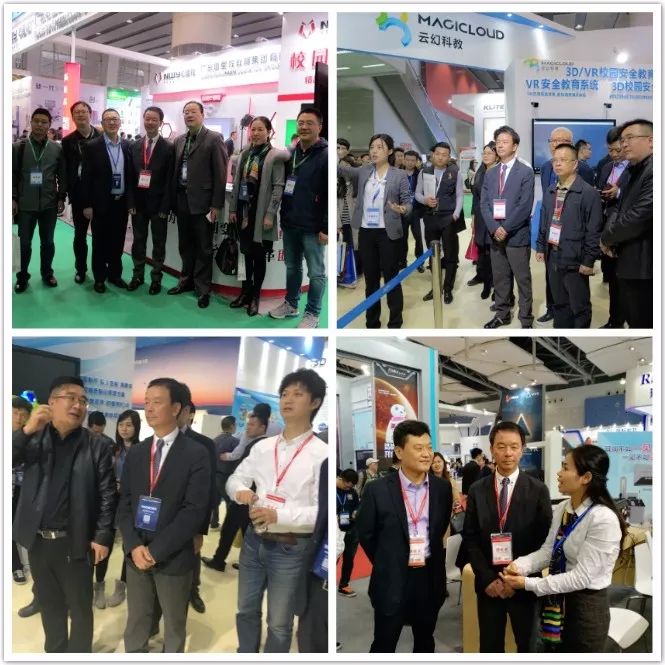 中國教育裝備行業(yè)協(xié)會會長王富、清華大學電教中心副主任、中國教育技術協(xié)會標準委員會秘書長鐘曉流教授等蒞臨協(xié)會展位指導,并為會員企業(yè)產(chǎn)品所展示的科技創(chuàng)新能力點贊。