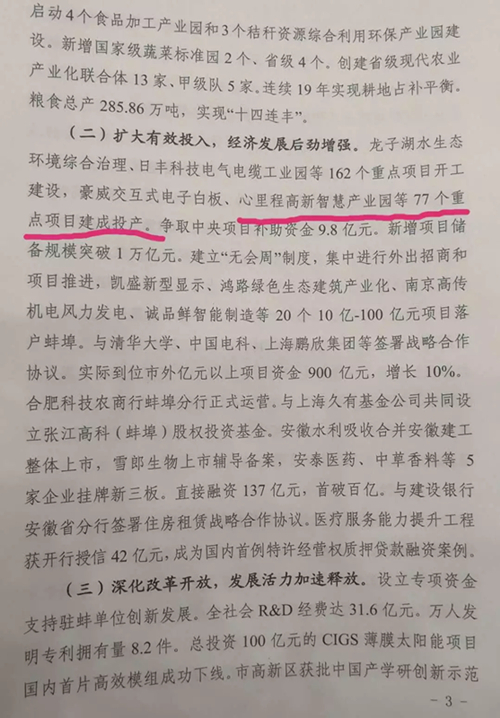 2015年心里程集團(tuán)在蚌埠市投資購(gòu)買第一棟安徽心里程科技大廈,隨后投資10億元建設(shè)占地100畝、建筑面積10萬(wàn)平方米的安徽心里程智慧產(chǎn)業(yè)園。心里程在蚌埠市投資的3年多來(lái),已在當(dāng)?shù)貏?chuàng)造應(yīng)稅營(yíng)業(yè)收入5億多元。心里程高新智慧產(chǎn)業(yè)園項(xiàng)目更被列入2018年蚌埠市政府人大工作報(bào)告。