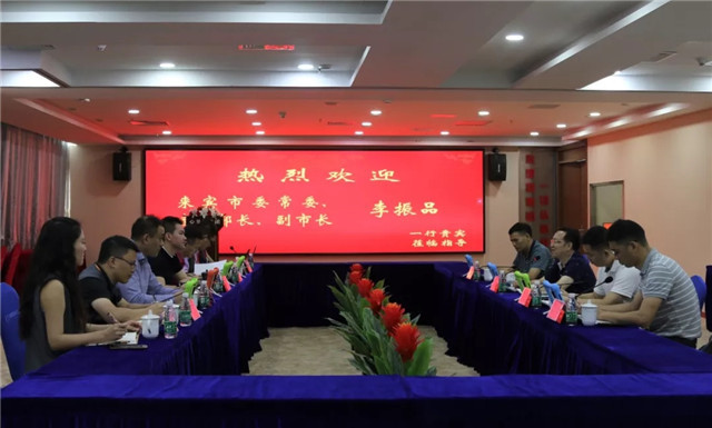 ▲6月13日,彭國(guó)遠(yuǎn)董事長(zhǎng)、彭俏奇董事長(zhǎng)一行應(yīng)邀到來賓市考察