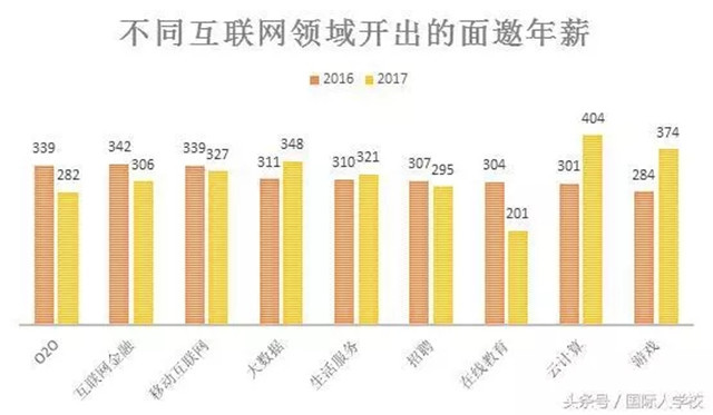 因各種壁壘的限制,在100offer發(fā)布的《2017年互聯(lián)網(wǎng)人薪資報(bào)告》中,在線教育以20.1K的年薪排在互聯(lián)網(wǎng)行業(yè)的末端,并且收入較2016年下滑34%。