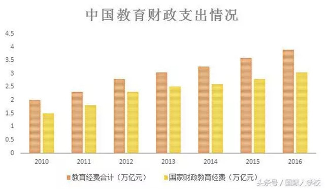 經(jīng)濟(jì)上,隨著國家經(jīng)濟(jì)的發(fā)展,2007年以來,國家教育行業(yè)國家財(cái)政支出占GDP比重逐年提高,2012年國家明確提出要求占到GDP的4%的水平。2016年我國教育經(jīng)費(fèi)合計(jì)達(dá)3.88萬億元,其中國家財(cái)政支出達(dá)3.1萬億元,體現(xiàn)了我國科教興國的基本國策。由圖中可以看出,近幾年國家對(duì)教育支出有很大比例的提高,其中2016年的財(cái)政支出已經(jīng)超過了2010年的兩倍。