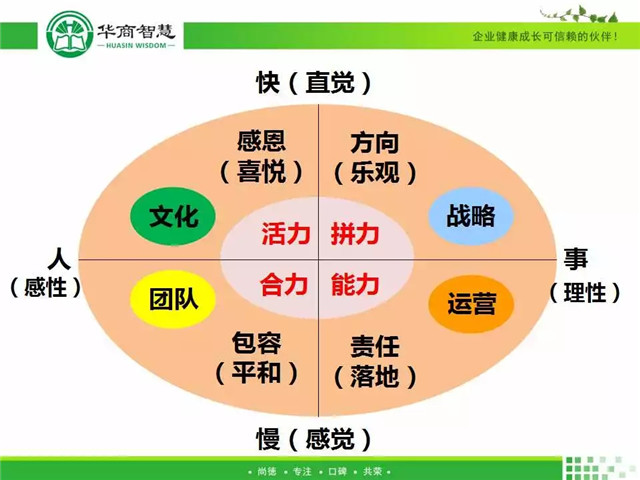 講師在培訓(xùn)中教導(dǎo)學(xué)員們調(diào)整自己的能量層級(jí),覺察心性,種好心智樹。講師強(qiáng)調(diào),每個(gè)人都生活在自己解讀的世界里,但無論如何都要正向解,做到心定、形靜、語益、意誠。性格不可改變,風(fēng)格可以選擇。講師在培訓(xùn)中根據(jù)學(xué)員們的性格與顏色,以“綠,藍(lán),黃,橙”四種顏色,詳細(xì)為同學(xué)們分類講解心智模式4D性格。人類有性格,企業(yè)有性格,家庭有性格,企業(yè)發(fā)展不同階段企業(yè)家心智模式也會(huì)轉(zhuǎn)變,事情與情緒是可以分開的,憤怒還是平和,領(lǐng)導(dǎo)藝術(shù),情緒失控,都要覺察自我的心理變化。