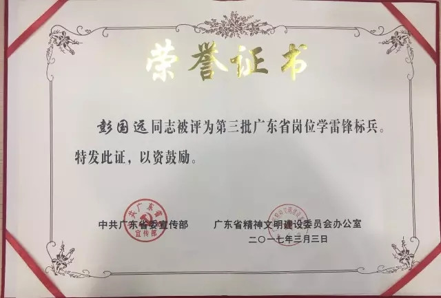 2017年榮獲“廣東學雷鋒標兵”稱號