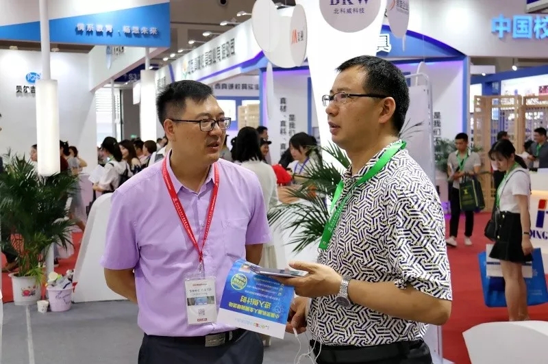湖南省教育裝備行業(yè)協(xié)會(huì)會(huì)長(zhǎng)王雷蒞臨心里程展位參觀指導(dǎo)