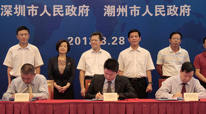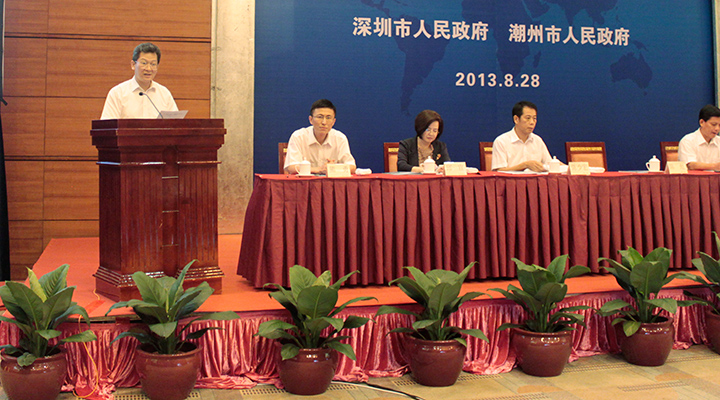 8月28日,2013年深圳(潮州)產(chǎn)業(yè)轉(zhuǎn)移工業(yè)園項目簽約儀式暨招商推介會在深圳五洲賓館舉行,深圳市陳彪副市長,潮州市李慶雄市長等領(lǐng)導(dǎo)出席并做講話,心里程集團彭國遠董事長作為簽約企業(yè)代表出席簽約。