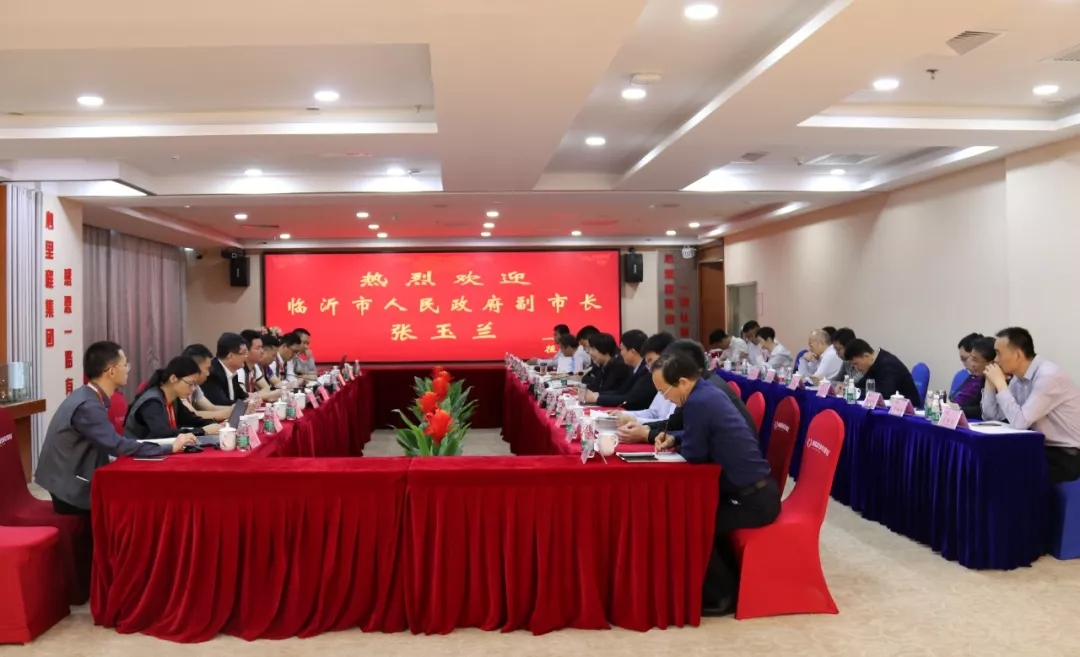 ↑ 2019年4月13日,彭國遠(yuǎn)董事長(zhǎng)率隊(duì)赴臨沂市實(shí)地考察,受到臨沂市委書記王玉君等領(lǐng)導(dǎo)的熱情接待。
