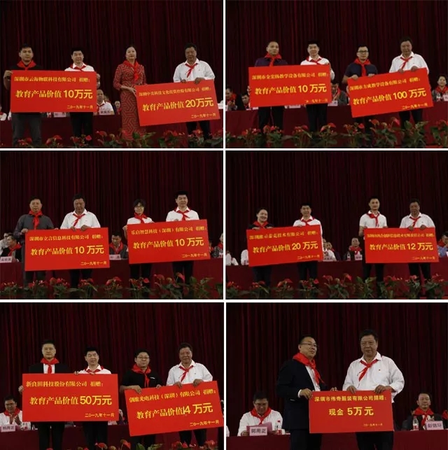 此次捐贈活動,心里程集團作為深圳市教育裝備行業(yè)協(xié)會會長單位,聯(lián)合深圳市偉奇服裝有限公司、深圳中美科技文化投資控股有限公司、深圳市云海物聯(lián)科技有限公司、深圳市方成教學設備有限公司、深圳市金宏揚教學設備有限公司、深圳市鴻合創(chuàng)新信息技術有限責任公司、創(chuàng)維光電科技(深圳)有限公司、深圳市新良田科技股份有限公司、深圳市立言信息科技有限公司、深圳維示泰克技術有限公司、樂啟智慧科技(深圳)有限公司等企業(yè)共同舉辦。這些企業(yè)都是教育裝備領域的佼佼者,在自身高速發(fā)展的同時,熱心教育公益事業(yè),積極踐行社會責任,以實際行動彰顯了服務社會、回報社會的企業(yè)精神,為行業(yè)健康發(fā)展樹立了榜樣。