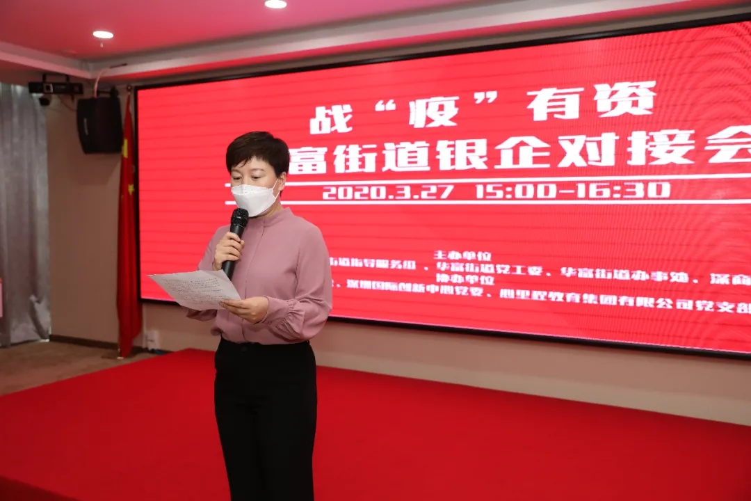 近日,由深圳市委派駐華富街道指導服務組,華富街道黨工委、辦事處,深商總會聯(lián)合主辦,華富街道總工會、深圳國際創(chuàng)新中心黨委、心里程集團黨支部承辦的“戰(zhàn)‘疫’有資,華富街道銀企對接會”在深圳國際創(chuàng)新中心A座26樓心里程會議室隆重舉行。會議旨在進一步服務實體經濟發(fā)展,幫助轄區(qū)企業(yè)搭建融資平臺,拓寬融資渠道,提振企業(yè)經營信心。共有7家銀行、2家擔保公司、20余家企業(yè)代表參加。