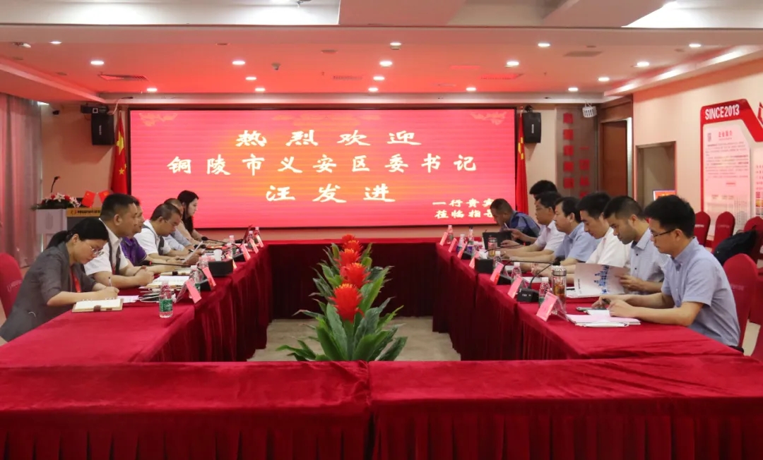5月27日,安徽省銅陵市義安區(qū)委書(shū)記汪發(fā)進(jìn)、銅陵團(tuán)市委書(shū)記方小雄等領(lǐng)導(dǎo)深入心里程集團(tuán)總部考察交流,進(jìn)一步推進(jìn)合作項(xiàng)目落地。廣東心里程投資集團(tuán)董事長(zhǎng)彭俏奇、置業(yè)集團(tuán)董事長(zhǎng)陳陸等領(lǐng)導(dǎo)熱情接待并陪同座談。